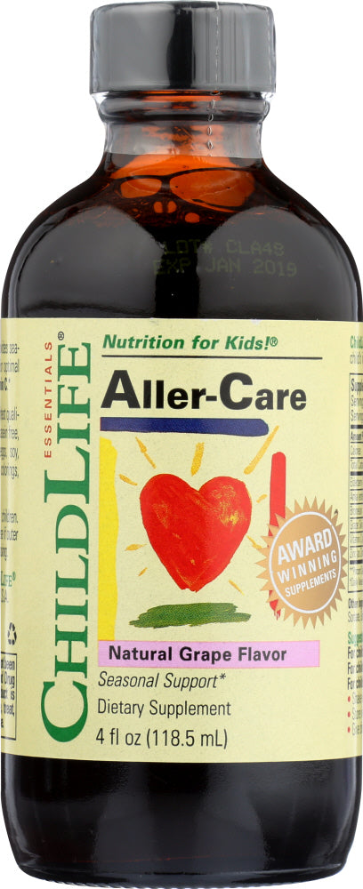 Description ChildLife® Aller-Care provides seasonal support for children.* It is an all-natural formula with nutrients to regulate hyper-immune response, antioxidants to reduce environmental irritation and herbs to support the immune system.* ChildLife® Aller-Care is a unique formula to support your child’s immune response.* For optimal benefit, use with ChildLife® Liquid Vitamin C.* *These statements have not been evaluated by the Food and Drug Administration. This product is not intended to diagnose, treat, cure or prevent any disease.
