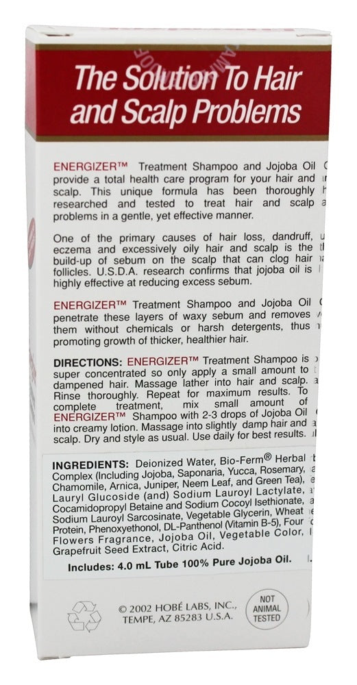Our Energizer™ Treatment Shampoo with Jojoba Oil penetrates these layers of waxy sebum and removes them without chemicals or harsh detergents, thus promoting growth of thicker, healthier hair. Vitamin B5 and Wheat Protein add volume to each hair shaft while Allantoin and our proprietary Bio-Ferm® Herbal Complex soothes and repairs damaged hair and scalp.
