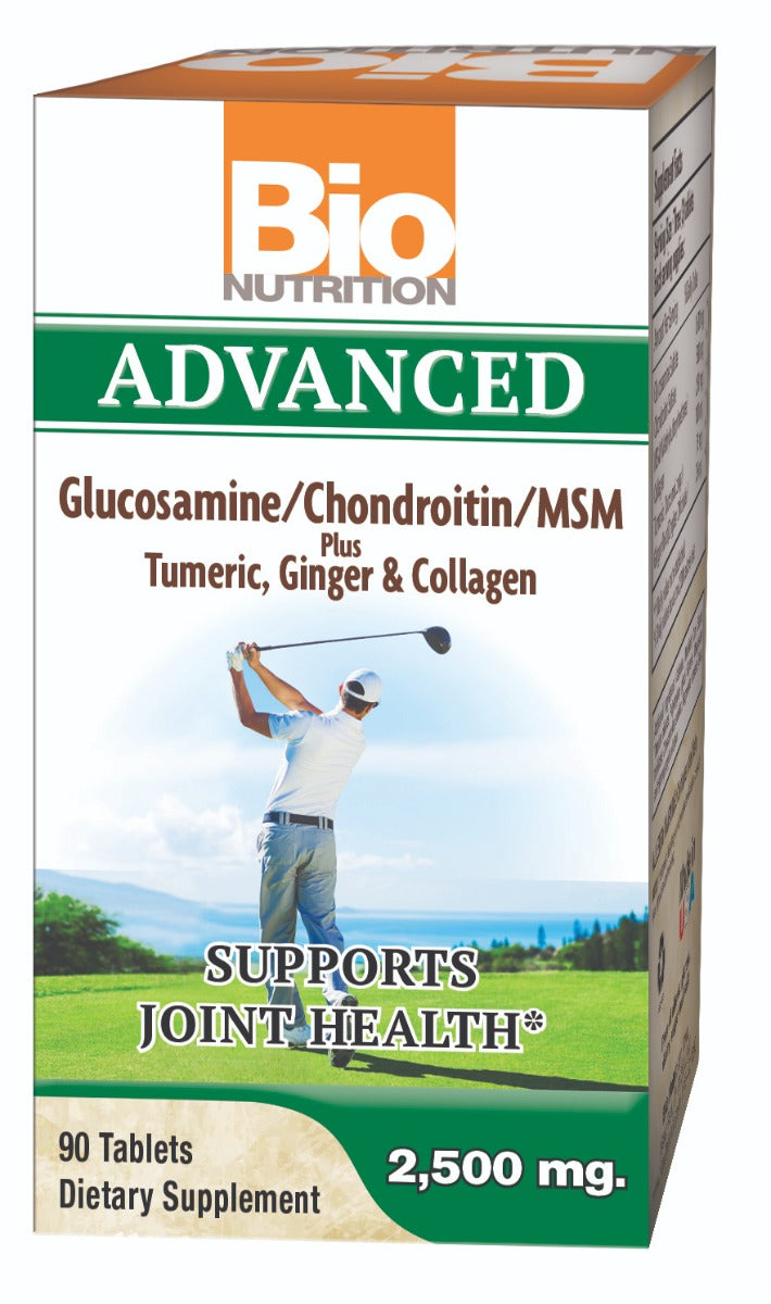 Bio Nutrition's Advanced Glucosamine formula is a synergistic blend of the finest quality Glucosamine, Chondroitin and MSM (Methylsulfonylmethane) enhanced with Turmeric, Ginger Root and Collagen. It may help support joint function and mobility as well as protect cartilage and reduce inflammation.* Bio Nutrition's Advanced Glucosamine can be a healthy addition for those individuals looking to protect joint and cartilage from damage from sports and aging.