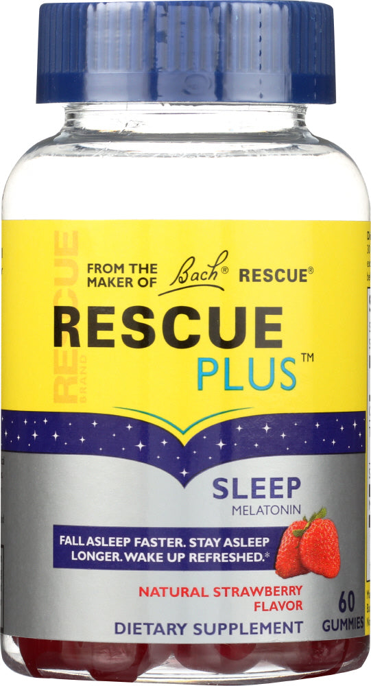 Each dose of RESCUE PLUS™ Sleep Gummies contain 5 mg of the sleep aid melatonin in an enjoyable natural strawberry flavor.
